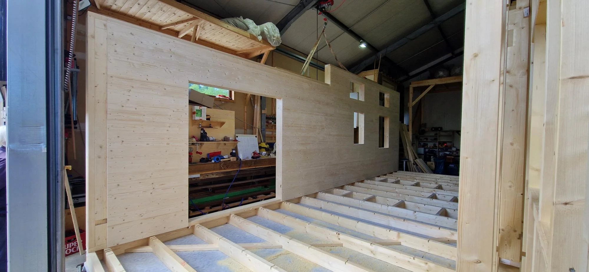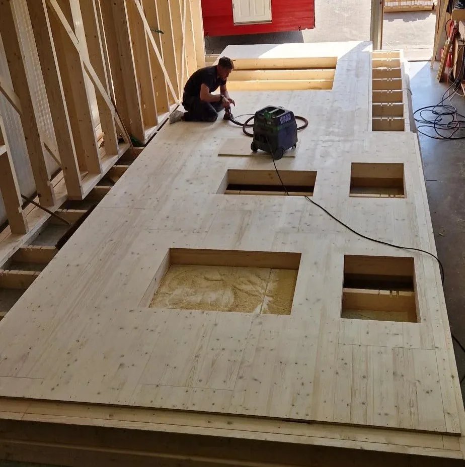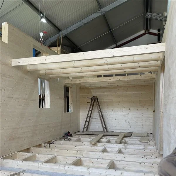 Unser Modulhouse 10.0 befindet sich aktuell im Bau (Bilder Stand Juli 2025). Auf Wunsch unserer Kunden wird dieses Haus mit einer großzügigen Empore realisiert. Insgesamt entsteht eine Wohnfläche von rund 53 m². Das Haus bietet eine offene und großzügig gestaltete Küche, einen gemütlichen Wohnbereich mit Kamin, ein gemütliches Schlafzimmer sowie ein kompaktes Bad. Viele Fenster sorgen für helle, lichtdurchflutete Räume und ein angenehmes Wohngefühl. Die große Empore erweitert den Wohnraum zusätzlich und schafft Platz für individuelle Nutzungsmöglichkeiten. Abgerundet wird das Modulhouse 10.0 mit Empore durch ein klassisches Satteldach, das dem modernen Haus eine zeitlose Architektur verleiht.